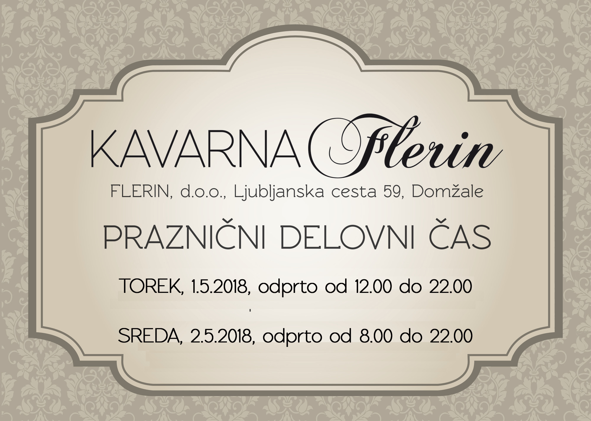 delovni cas Kavarna Flerin prvi maj 2018